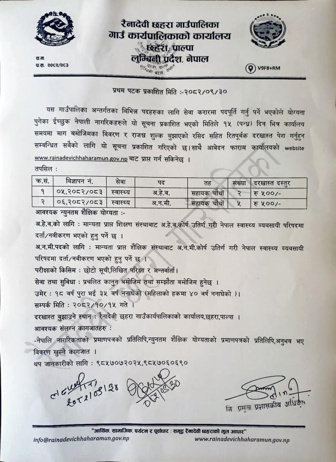 रैनादेवी छहरा गाउँपालिकाको गाउँ सभाबाट पारित वार्षिक नीति, कार्यक्रम तथा बजेट पुस्तिका २०८२/८३