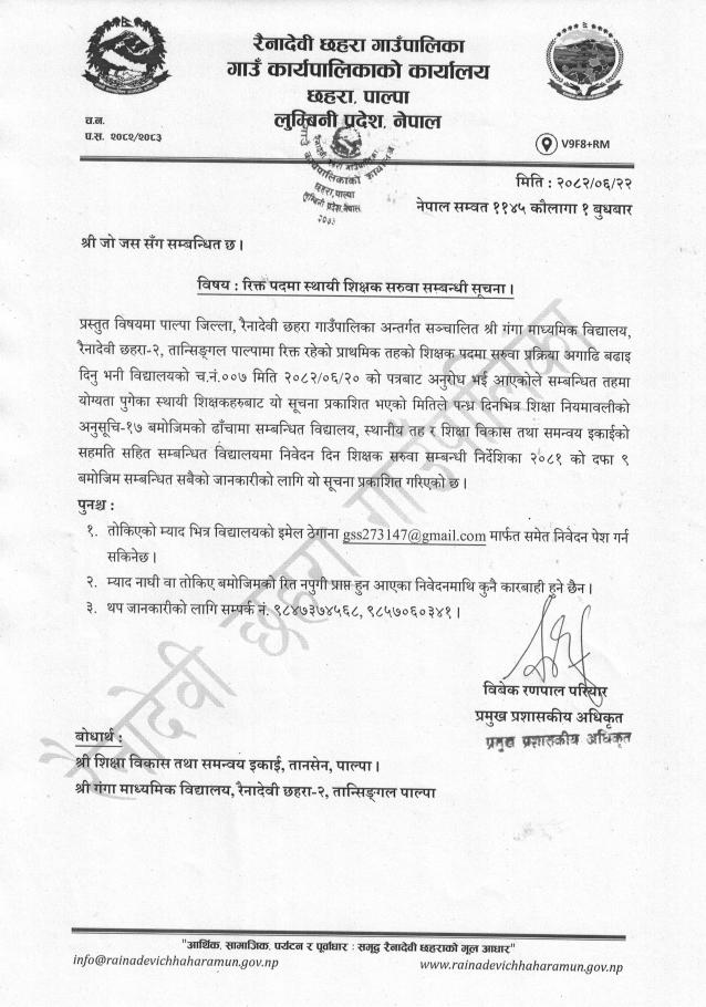 रिक्त पदमा स्थायी शिक्षक सरुवा सम्बन्धी सूचना