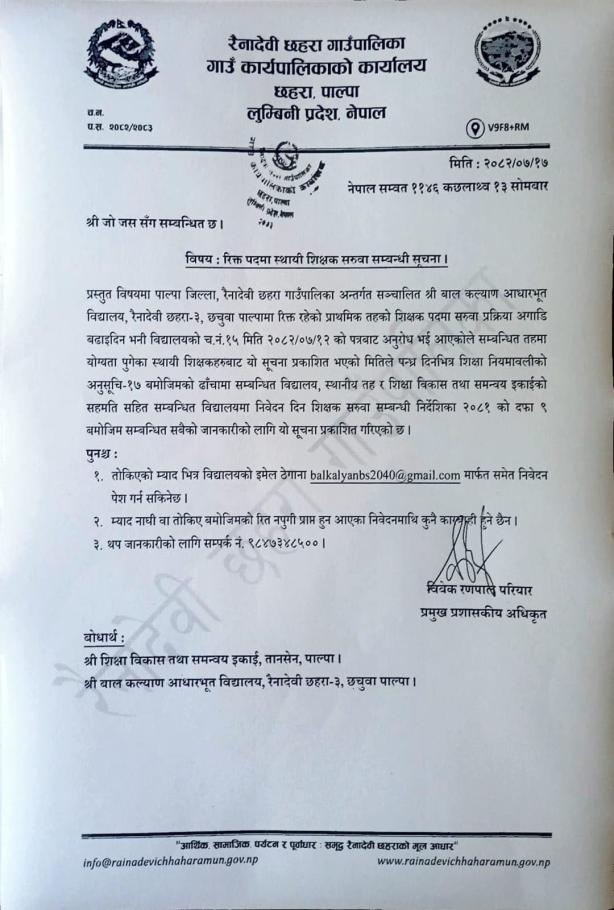 रिक्त पदमा स्थायी शिक्षक सरुवा सम्बन्धी सूचना