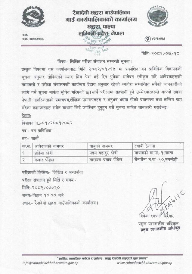 लिखित परीक्षा सञ्चालन सम्बन्धी सूचना