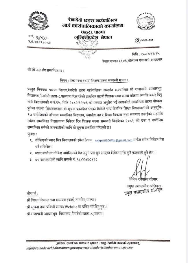 रिक्त पदमा स्थायी शिक्षक सरुवा सम्बन्धी सूचना ।