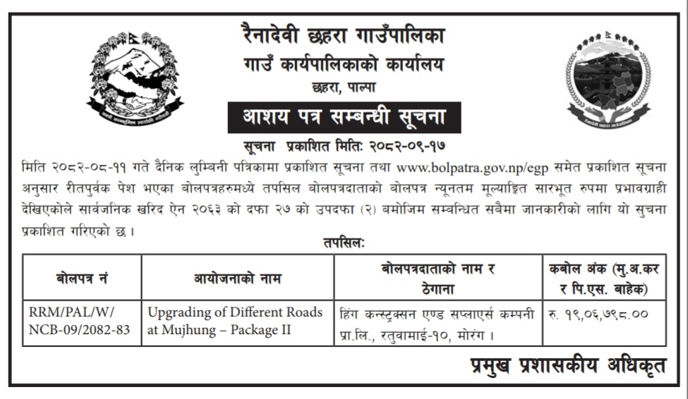 रैनादेवी छहरा गाउँपालिकाको गाउँ सभाबाट पारित वार्षिक नीति, कार्यक्रम तथा बजेट पुस्तिका २०८२/८३