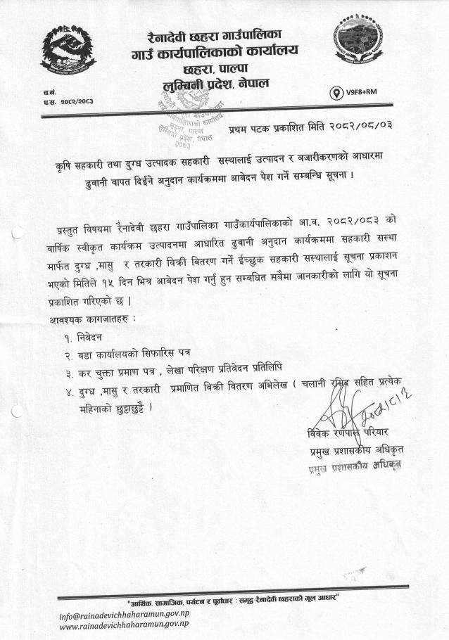 कृषि सहकारी तथा दुग्ध उत्पादक सहकारी संस्थालाई अत्यन्त जरुरी सूचना।
