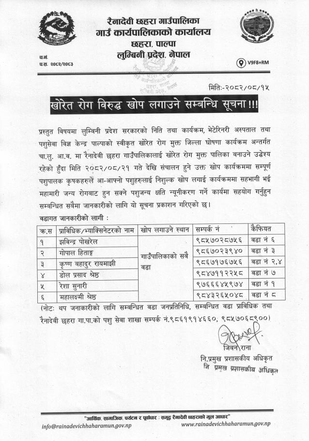 खोरेत रोग विरुद्ध खोप लगाउने सम्बन्धी सूचना