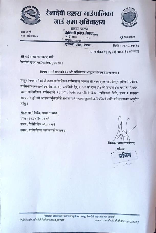 गाउँ सभाको १९ औँ अधिवेशन आह्वान सम्बन्धी सूचना