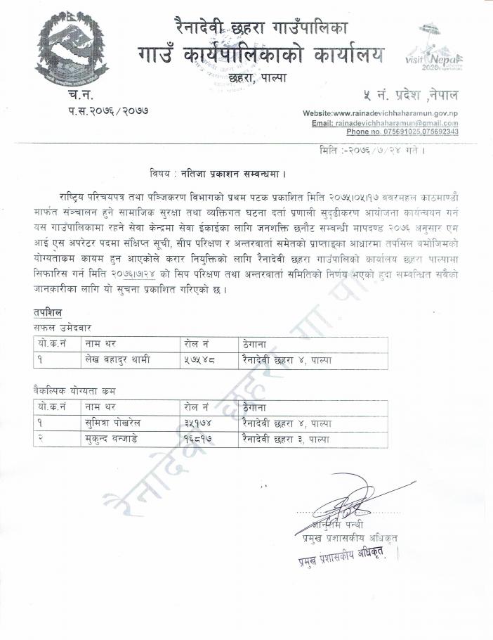 रैनादेवी छहरा गाउँपालिकाका प्रकाशनहरु