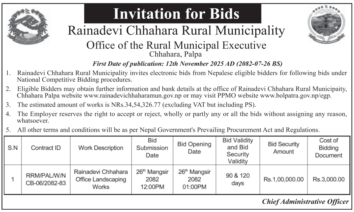 बोलपत्र आह्ववान सम्बन्धी सूचना
