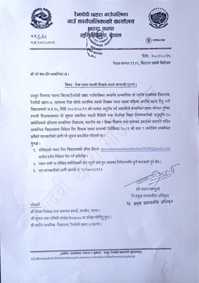 रिक्त पदमा स्थायी शिक्षक सरुवा सम्बन्धी सूचना।