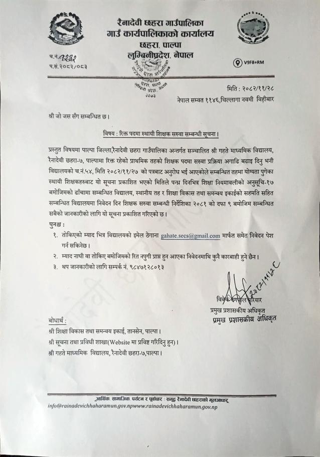 रिक्त पदमा स्थायी शिक्षक सरुवा सम्बन्धी सूचना ।