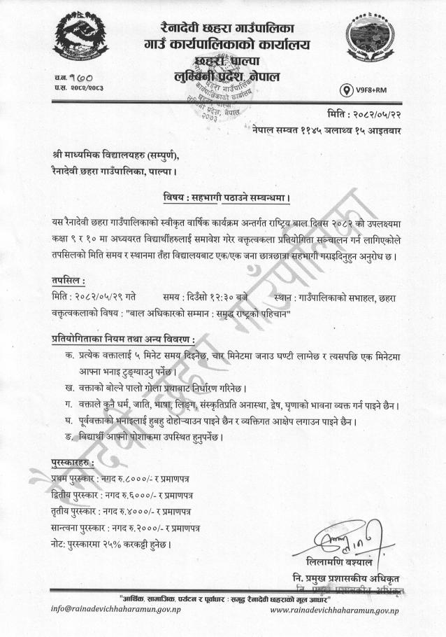वक्तृत्वकला प्रतियोगितामा सहभागीता सम्बन्धमा(सम्पूर्ण विद्यालयहरू)