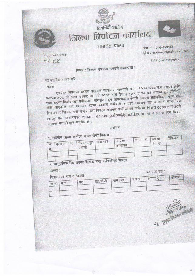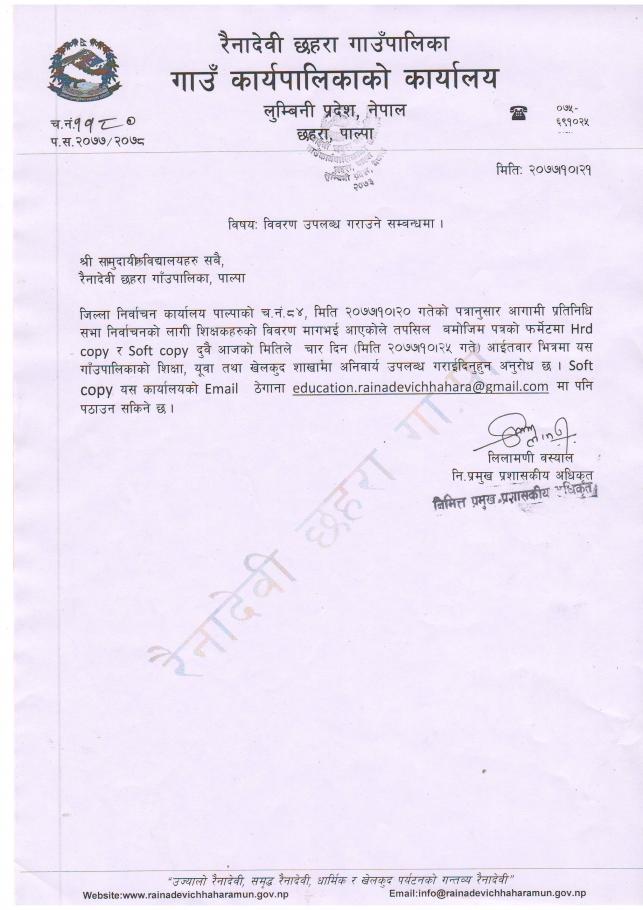विवरण उपलब्ध गराउने सम्बन्धमा (श्री सामुदायिक विद्यालयहरु सबै)