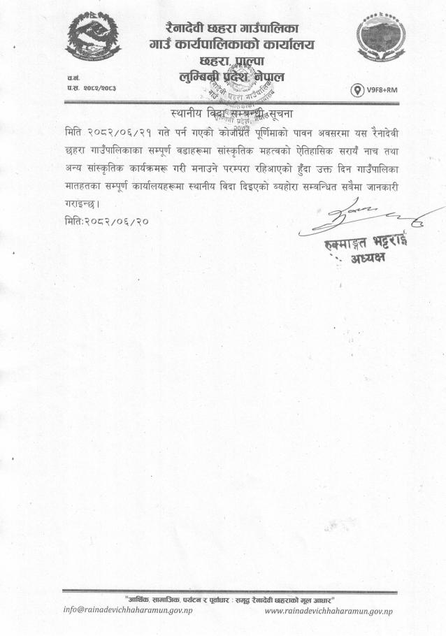 स्थानीय विदा सम्बन्धी सूचना