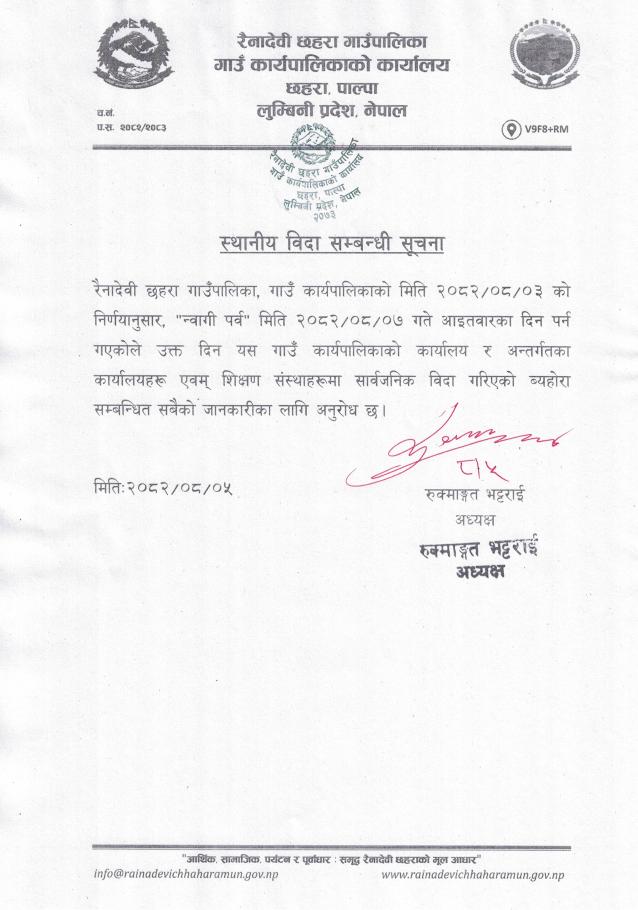 स्थानीय विदा सम्बन्धी सूचना