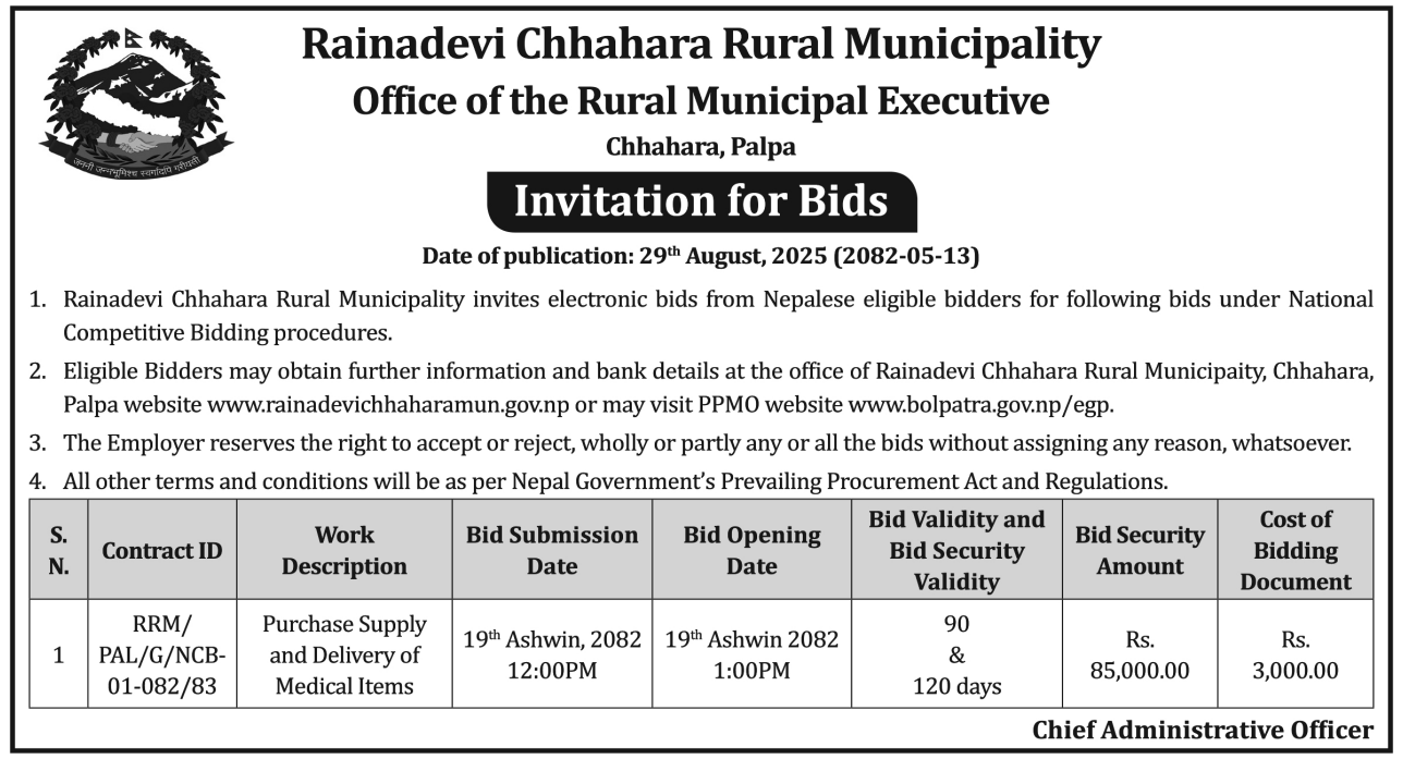 Invitation of e-bids for Purchase supply and delivery of Medical Items